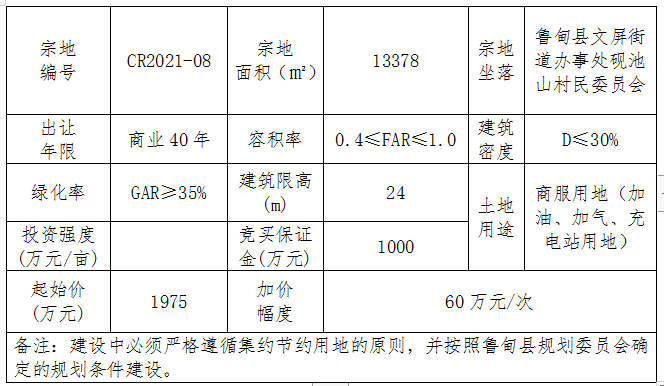 (一)魯?shù)榭hCR2021-08號(hào)地塊競買保證金:1000萬元。