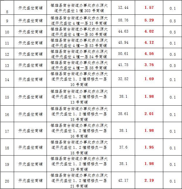 (三)拍租鎮(zhèn)雄縣城市運(yùn)營管理有限公司國有門面3年期使用權(quán),詳見下表: