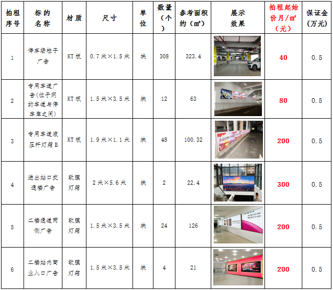 (六)拍租鎮(zhèn)雄縣開元商業(yè)物業(yè)服務(wù)有限公司以勒高鐵站站前廣場(chǎng)各類廣告位使用權(quán),廣告位分布、類型、規(guī)格及展示效果如下: